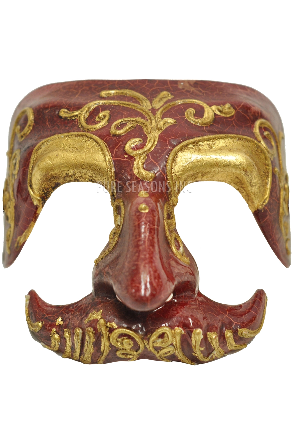 This Ceffo Masquerade Mask (Red) includes a half mask depicting a shattered red paint design, embossed detailing, a prominent nose, and cutout cheeks. This unique mask will sure make a bold statement and would be perfect for your next masquerade party.