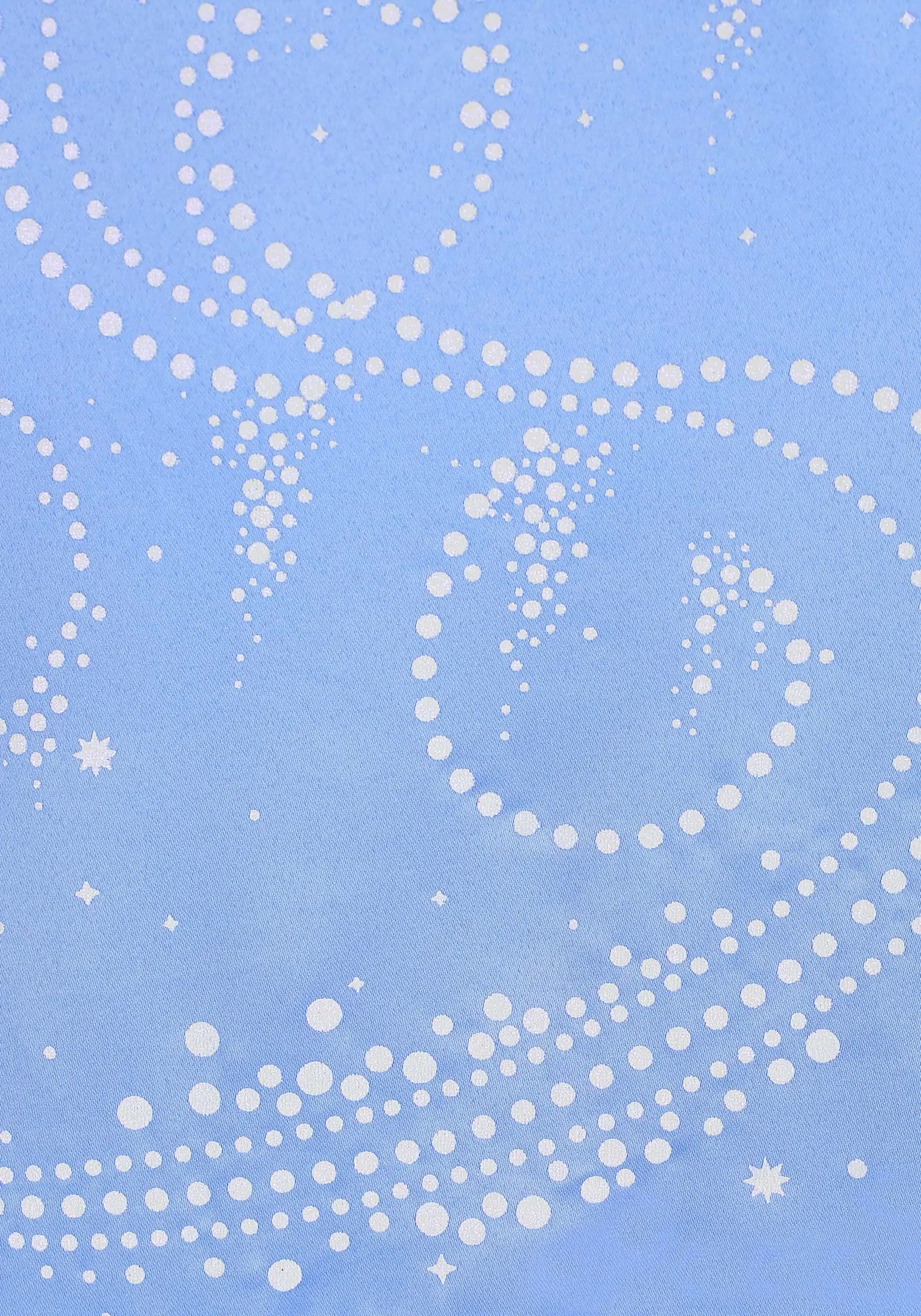 - Dress bodice is jersey knit w/ front overlay of ice blue glitter organza
