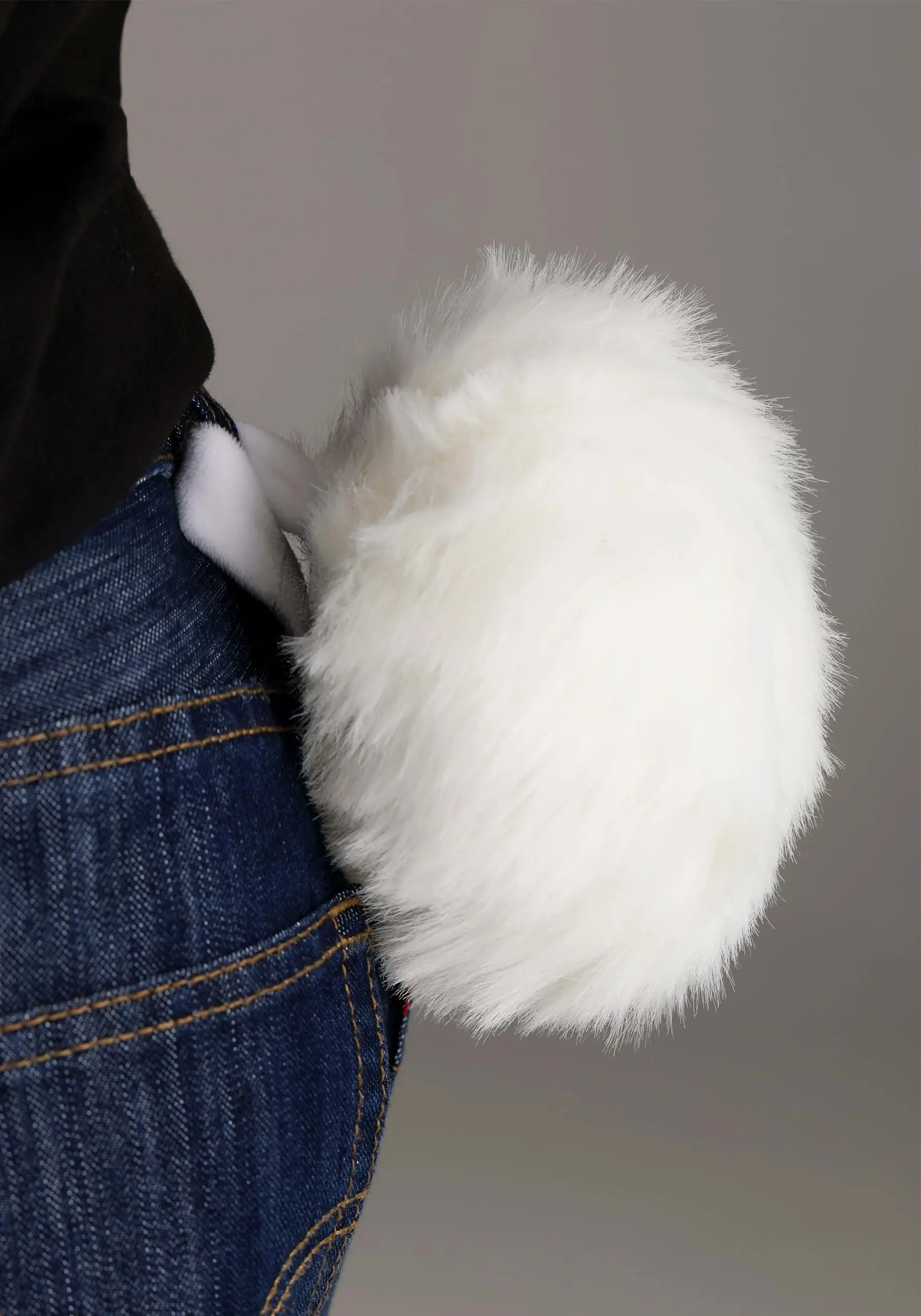 - Fiberfill-stuffed faux fur tail has fabric strap w/ hook & loop fastener to attach to belt or belt loop