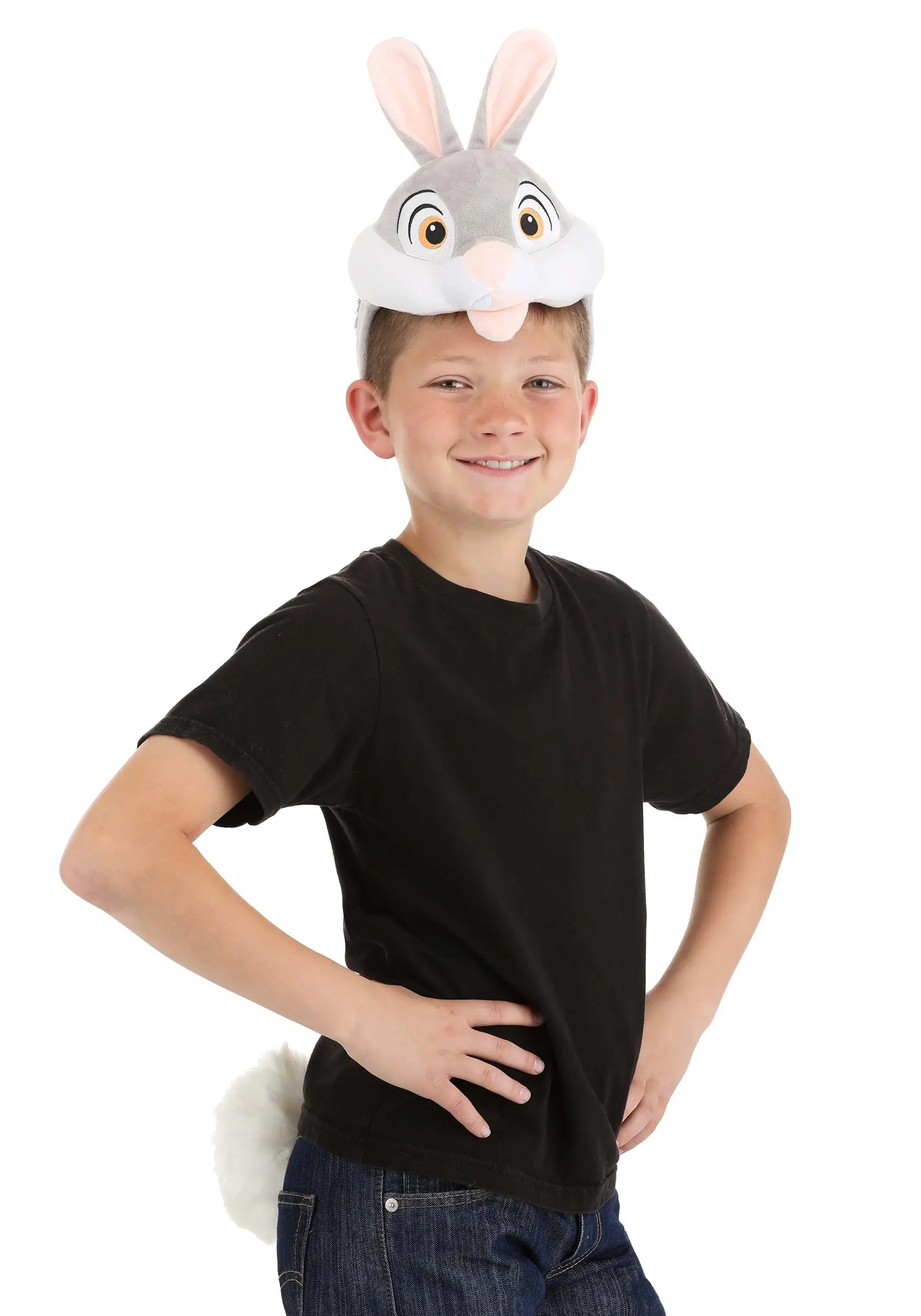 You’ll be twitterpated for this officially licensed Adult Bambi Thumper Soft Headband & Tail Costume Kit! The cloth-covered headband jas an attached face panel shaped like the upper half of Thumper’s head. Its details include embroidered eyes as well as soft-sculpted cheeks, snout and mouth, and two 3D ears lined with pink fabric. The tail is an oversized white pom-pom made of faux fur.