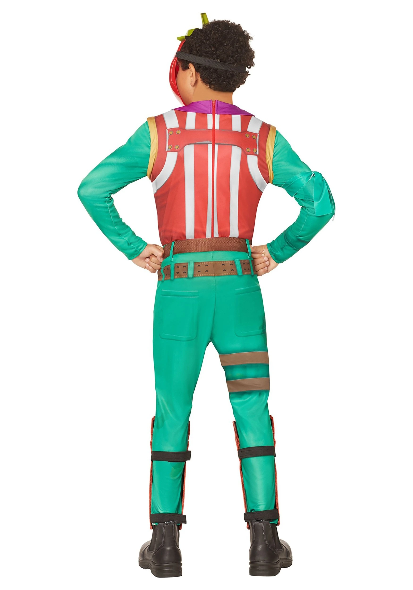 Bring joy and greasy goodness to Battle Royale fighters in your officially licensed Fortnite Boys’ Tomatohead Costume! This 100 percent polyester jumpsuit is plastered in awesome printed graphics. The appliqued quilted pizza on the chest is enough to make anyone hungry. Your Tomatohead mask is made of molded plastic and secures via an elastic band so you can flash that unnervingly cheery grin at all Pizza Pit customers. Strap the belt around your waist and pull on the shin guards. After all, you never know where a fight might break out and food fights are the most dangerous of all!