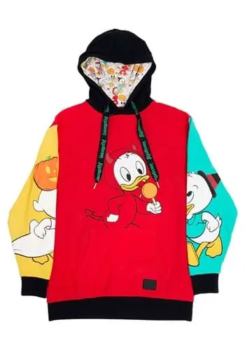 Sure, one Halloween costume is pretty cool. But what about three? Uncle Scrooge’s favorite nephews are dressed to go out trick-or-treating on this super comfortable Loungefly Disney Huey, Dewey, and Louie Halloween Hoodie. Each triplet gets his own color block that coordinates with his costume theme. The lined hood has an extra large drawstring cord that you’ll never lose. The kangaroo pocket on the front is big enough to fit both your hands (or all your Halloween candy!) It’s a casual, loose fit that Duck Tales fans of any age, size, or gender can enjoy.
