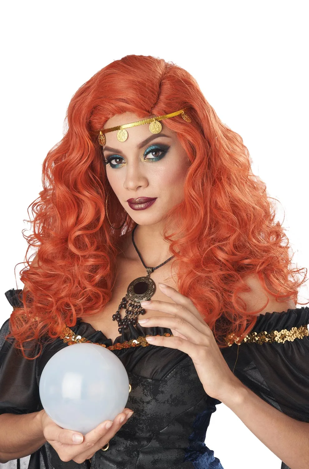 When you think of a beautiful fortune teller they usually have long, flowing curls! With this wig you can complete your fortune teller costume by getting that signature look! This wig comes in a beautiful bright auburn color that will catch anyone’s eye. It even has a gold coin headband to complete the look!