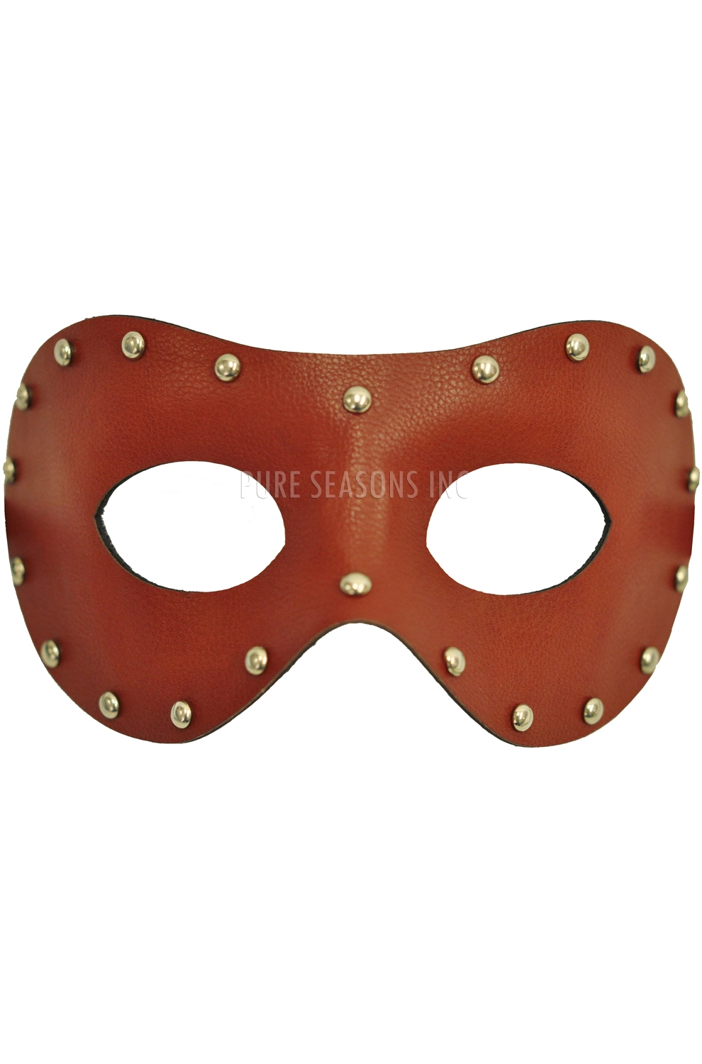 The Studded Stranger Masquerade Mask (Brown) includes a leather-like half mask adorned with studded accents. This is the perfect mask for meeting a mysterious stranger at a masquerade event.